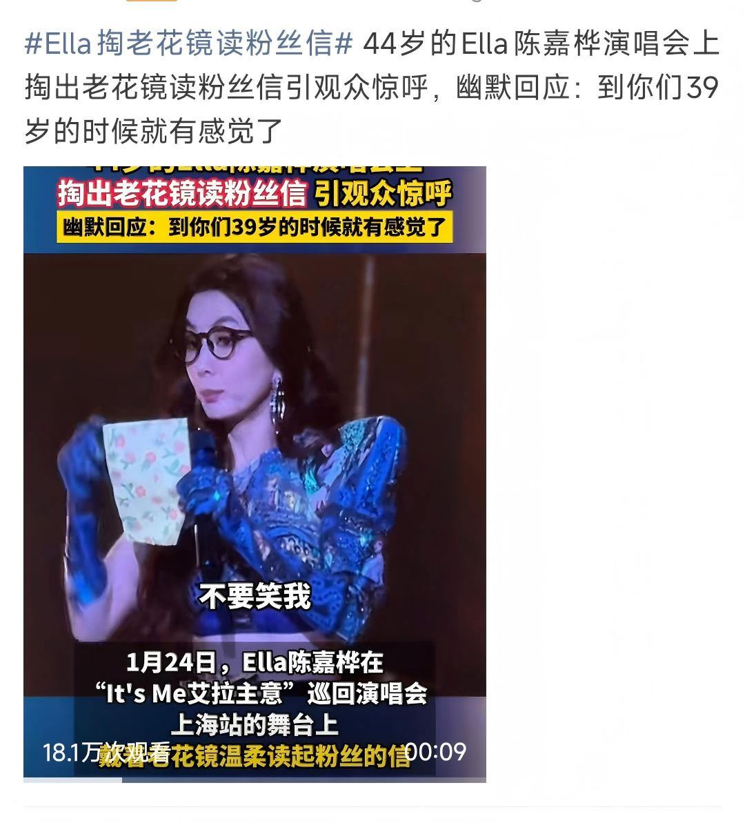 “不要笑我,到你们39岁的时分,就爽快有嗅觉了,什么叫断崖式下落。”近日,44岁的ELLa陈嘉桦在演唱会上掏出老花镜读粉丝信,关系话题飞速登上热搜,她直言:眼睛确凿会在顷刻间看不见,这也让网友暗潮涌动:正本芳华已室迩人远。